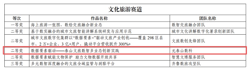 近日,由山東省大數(shù)據(jù)局、中共山東省委網(wǎng)絡(luò)安全和信息化委員會(huì)辦公室、共青團(tuán)山東省委等多部門聯(lián)合主辦的2025年“數(shù)據(jù)要素×”大賽山東分賽圓滿落幕。泰山文旅集團(tuán)子公司元泰山數(shù)字科技有限責(zé)任公司憑借“數(shù)據(jù)要素驅(qū)動(dòng)——泰山文旅數(shù)智多業(yè)態(tài)創(chuàng)新實(shí)踐”項(xiàng)目,從眾多參賽作品中脫穎而出,獲文化旅游賽道二等獎(jiǎng)。